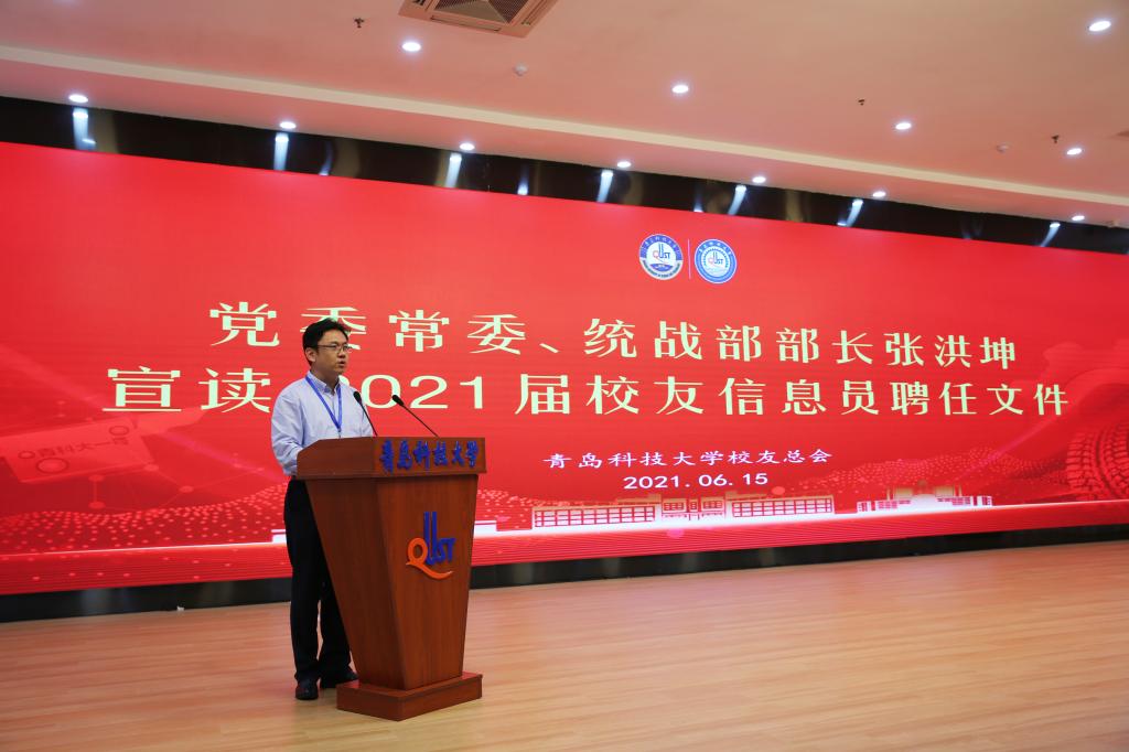 6月15日下午,学校2021届校友年级理事会成立大会暨校友信息员聘任仪式在崂山校区第二报告厅隆重举行。党委常委、副校长、校友总会常务副会长韦殿华,党委常委、统战部部长张洪坤出席活动,研究生院、学生处、团委和校友办负责人,学校2021届校友年级理事会理事和校友信息员代表共200余人参加了仪式。